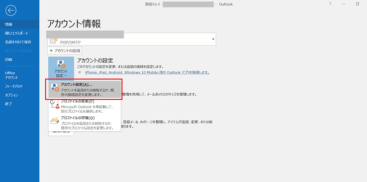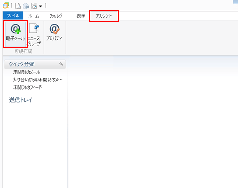 メニューバーから[アカウント] → [電子メール] を選択します。