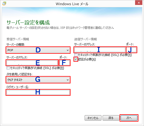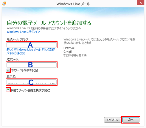 「手動でサーバー設定を構成する」にチェックを入れて「次へ」を押してください。