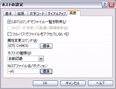 デフォルト設定でファイルが見えない場合には、FFFTPのサーバの設定を以下のように変更してください。